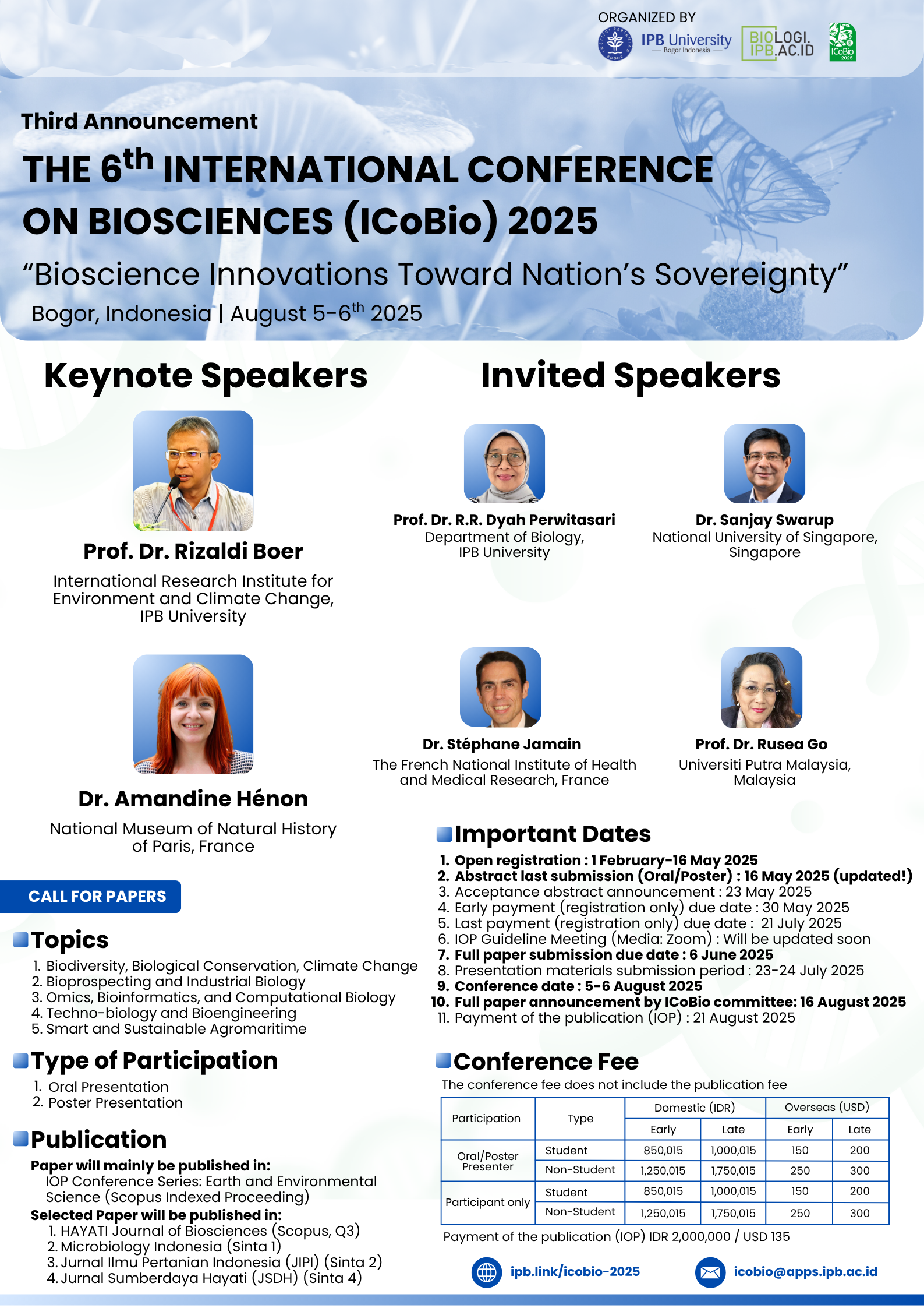 Committee: Department of Biology, IPB University (email: icobio@apps.ipb.ac.id)